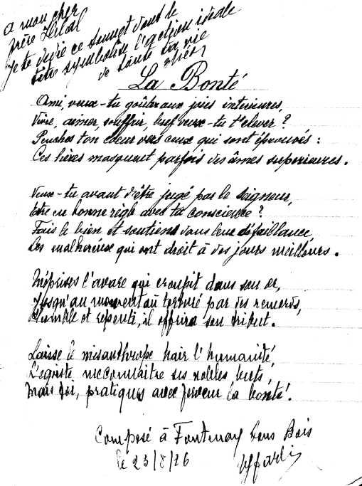 Mais toi, pratiques avec ferveur la bonté.Une copie du sonnet manuscript (fichier jpeg).