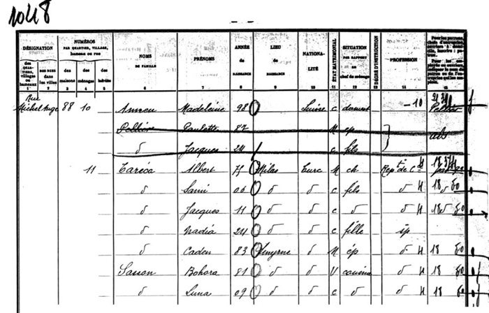 Albert and Caden (née Levy) Tarica Paris Census 1931