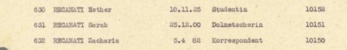 Zacharia Recanati & family deported in 17 Dec 1943 to Auschwitz