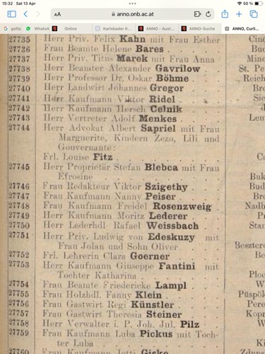 Albert Sapriel & famille - liste curistes carlsbad 11 Jul 1909