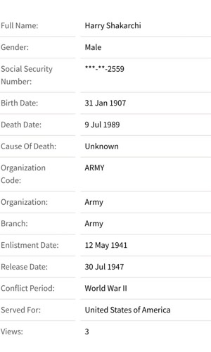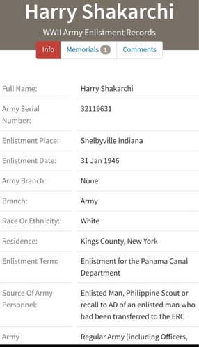 Harry Shakarchi WWII draft