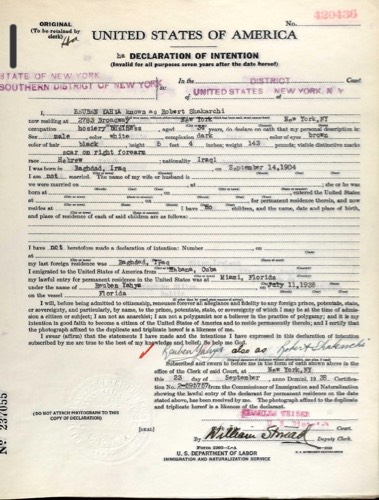 Reuben Yahya Aka Robert Shakarchi Naturalisation 1938